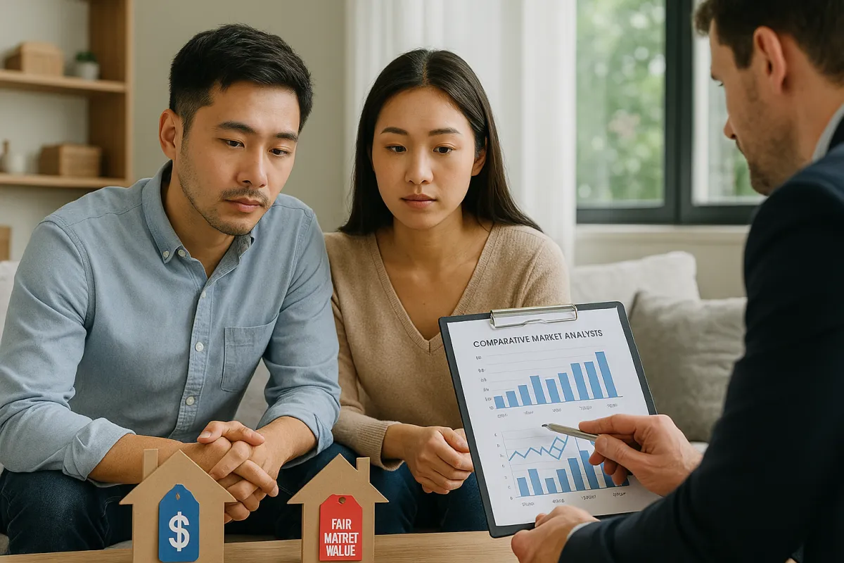 Buyers determine value by comparing your home to others. Choosing your price means choosing your competition. The right price attracts buyers, shortens time on market, and increases final sale price. We define Fair Market Value (FMV) as the price a willing buyer and seller agree to under no pressure. Internal (property-specific) and external (market) factors must be balanced.